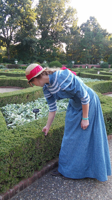 I'm hoping to find a few more excuses this fall to wear this dress. It's nice to have a historical dress that's easy to get into that doesn't require a massive amount of petticoats (though I really should have at least one more petticoat to wear with it, I just ran out of time to get a second sewn).