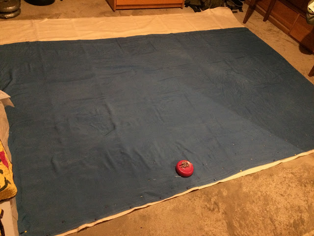 Once that white silk sheet was dyed a brilliant blue, I was really ready to start on my coat, but starting got delayed once again. First I had to make some Christmas dresses. Well, this delay gave me time to think about how I wanted to construct my coat, and I decided that I wanted a quilted lining for extra warmth. So, I bought some cotton quilt batting and my planned coat became 4 layers thick - wool, flatlined with cotton flannel, followed by batting quilted to a silk sheet.