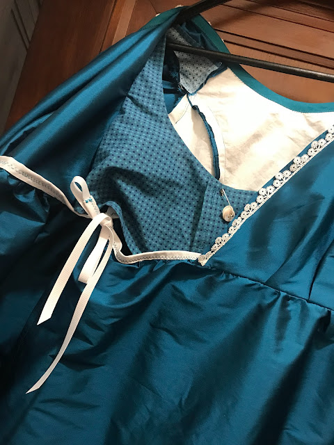 Goodnight Mr. Darcy, (Let's get her started on Jane Austen young!) so I decided a Regency-esque dress was an order. And clearly my niece would need a dress to match her doll.