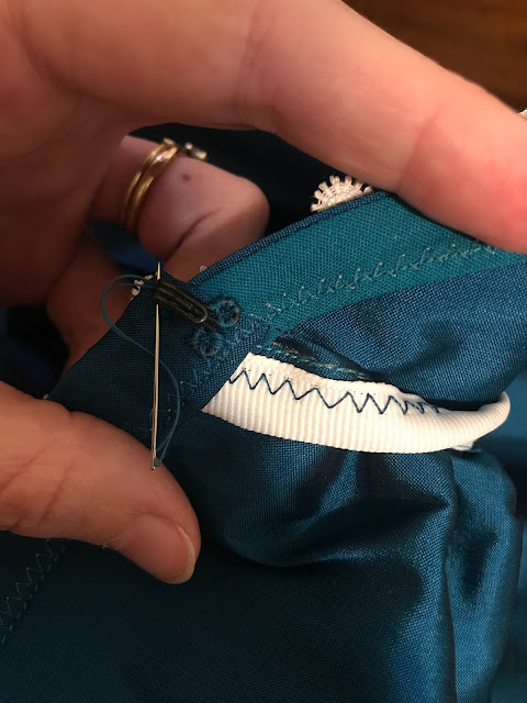 The only change I made was to sub a chain stitch, done by hand, for the center "part", rather than the machine done zig-zag stitch the tutorial recommended. I just thought it would look nicer.