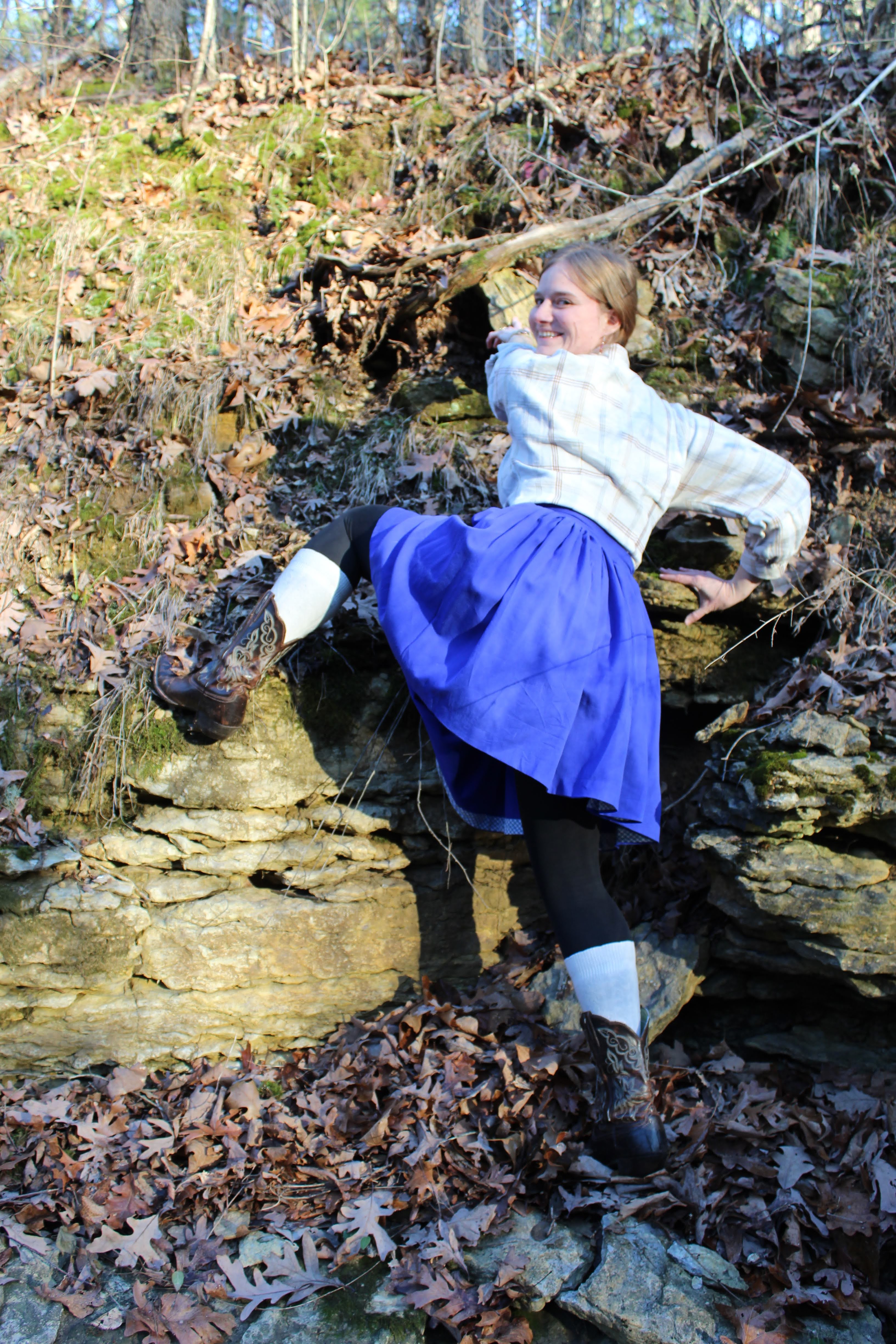 After finishing my Joy Jacket in fall of 2021, I had some fabric left over. About 1 yard of colbalt blue wool, and about a yard and a half of plaid flannel. I liked the way fabrics looked together, so I decided to make a slightly dressy winter outfit out of them.